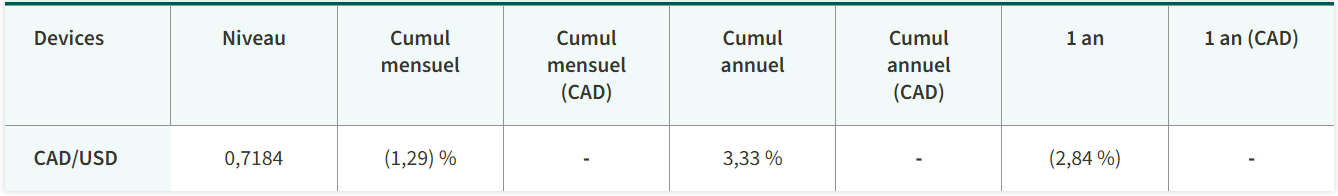Toujours en septembre, Statistique Canada a fait savoir que la croissance du produit intérieur brut du Canada avait dépassé les attentes en juillet, avant de s’immobiliser en août selon les estimations. L’inflation se situe toujours sous la cible des 2 % de la Banque du Canada (BDC). Cependant, le taux de chômage est le plus élevé depuis 2021. Par conséquent, la BDC a abaissé son taux directeur vers la fin du mois.